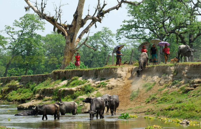05:30 Visita de pueblo de por carrito de Bullock: llamada de despertador seguido de té o café y luego proceder a dar un paseo por el pueblo de los Tharus. El naturalista de resorte les informará sobre el aspecto social y cultural de los habitantes del pueblo y su estilo de vida. Después del paseo visita en un carro de bueyes y volver al complejo.