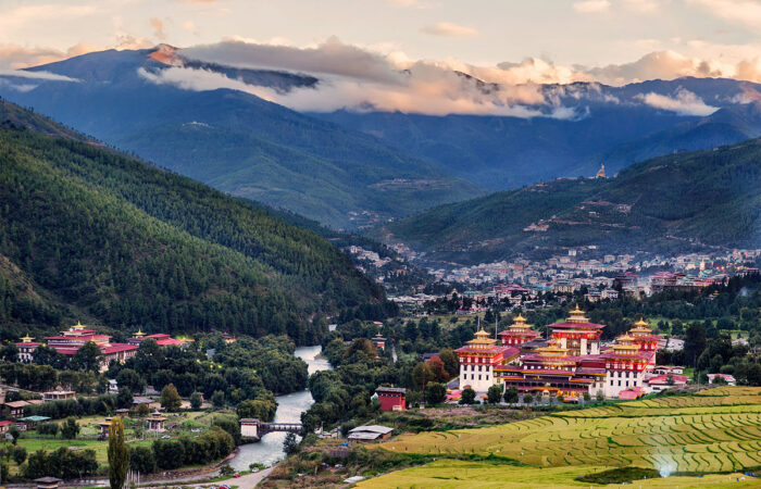 Empezar con la visita del Memorial Chorten (que fue construido por el tercer rey de Bután quien reinó entre 1952-1972), Monasterio de Changgangkha, la torre de radio (por la magnifica vista de la ciudad Thimphu y Thimphu Dzong), y el Zoo, donde encontraremos el animal nacional de Bután. Desde allí visitamos Zilukha (convento de monjas), biblioteca nacional (la casa antigüedad manuscrito) y escuela de artes (se conoce como la escuela de pinturas). Descanso para comer y visita del instituto nacional de las medicinas de árboles, fabrica de papel, Tashicho Dzong y Simtokha Dzong, la fortaleza más vieja del reino.
